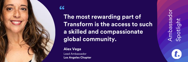 Alex: I have been participating in the Transform community since 2019, and as I’ve grown in my career, I’ve also grown in the community. Taking on the Transform Ambassador role was intuitively the next step in the journey to continue to pour into an amazing group of people-driven leaders across the globe.