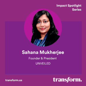 Welcome to the Transform Impact Series, where we share the stories of people and organizations making a real difference in the world of work. The ones whose actions leave a mark, creating better workplaces, stronger communities, and a future where business and purpose work together. Each feature takes you inside their journey. You’ll see the challenges they’ve faced, the choices they’ve made, and the people whose lives have changed because of their work. Let’s hear from Sahana Mukherjee, Founder & President at Unveiled, to see how they’re making their mark on the world.
